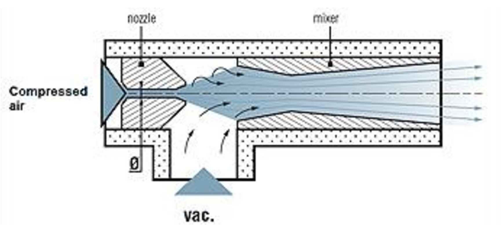As we leave February and begin to experience the first signs of warmer weather, we thought it would be the perfect time to discuss HVAC induction systems. The principle is quite simple. First, we have to understand the Venturi Effect. It is the reduction in fluid pressure that results when a fluid flows through a constricted section of a pipe. The restriction increases the velocity to conserve mass continuity. This create a vacuum if there is a hole in the pipe. (See figure 1).